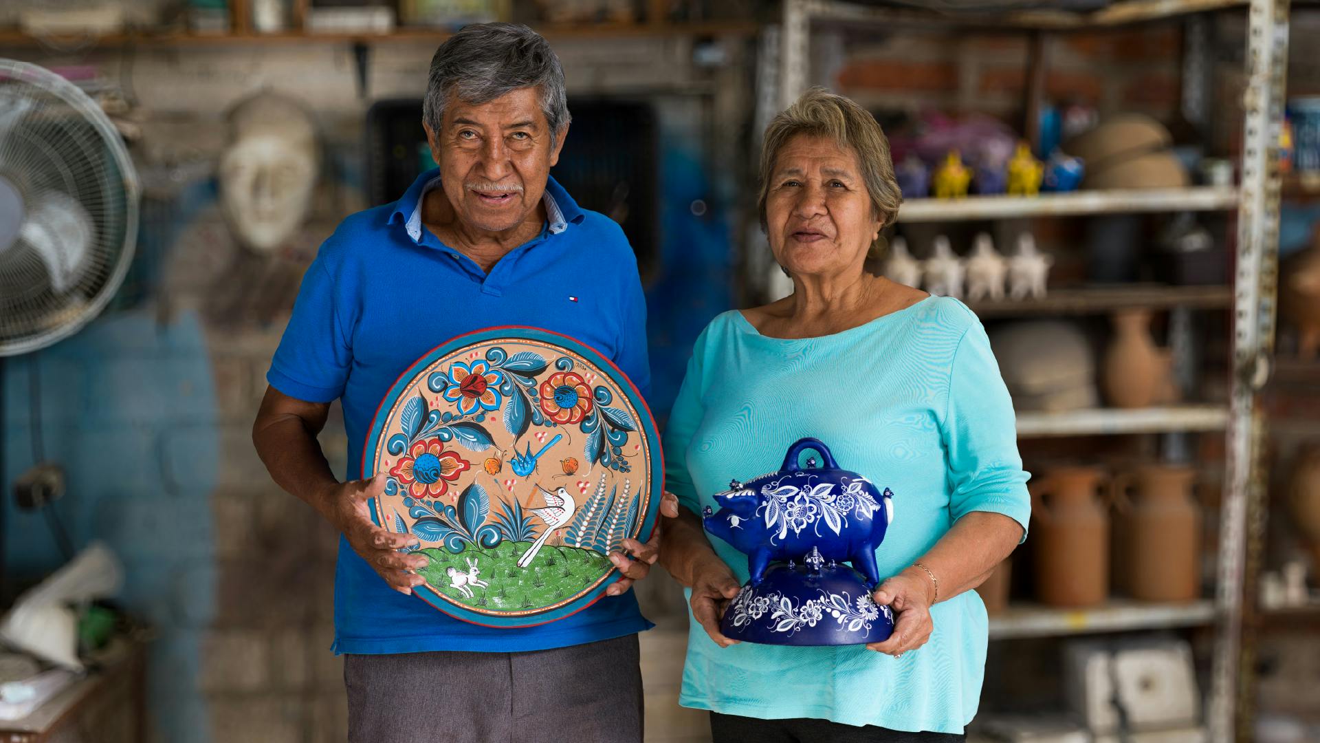 María Elena y José, trabajan juntos en su taller; en un ambiente familiar, elaboran sus piezas de barro y entre ellos se apoyan para que cada pincelada se convierta en una obra de arte que perdure en el tiempo.