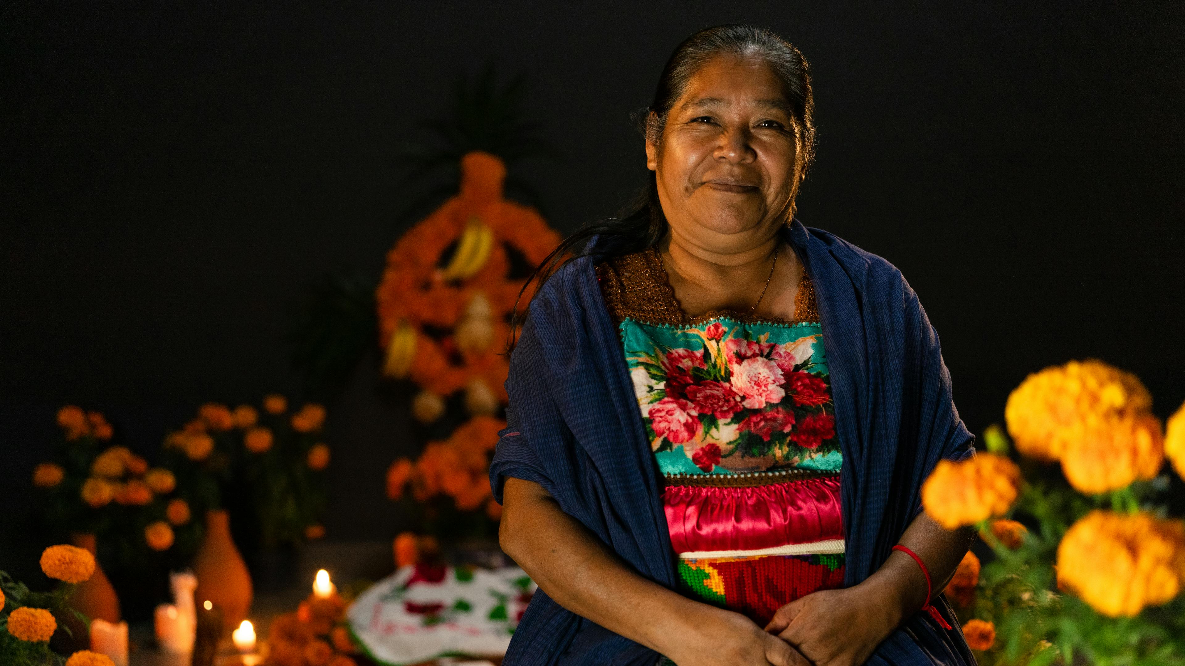Esperanza Pérez, artesana originaria de la comunidad Purépecha en Cocucho, Michoacán, nos comparte cómo se vive esta tradición en su pueblo, dando inicio a los primeros preparativos desde el 31 de octubre, para montar una ofrenda en el panteón en memoria de los seres queridos que ya han partido.